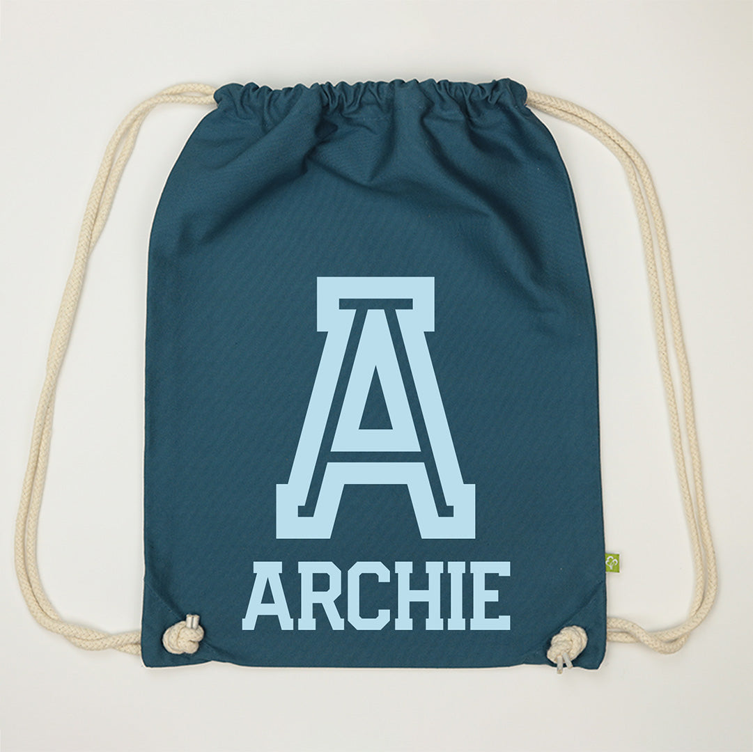 Personalised Organic Drawstring Bag - Varsity Letter/Name