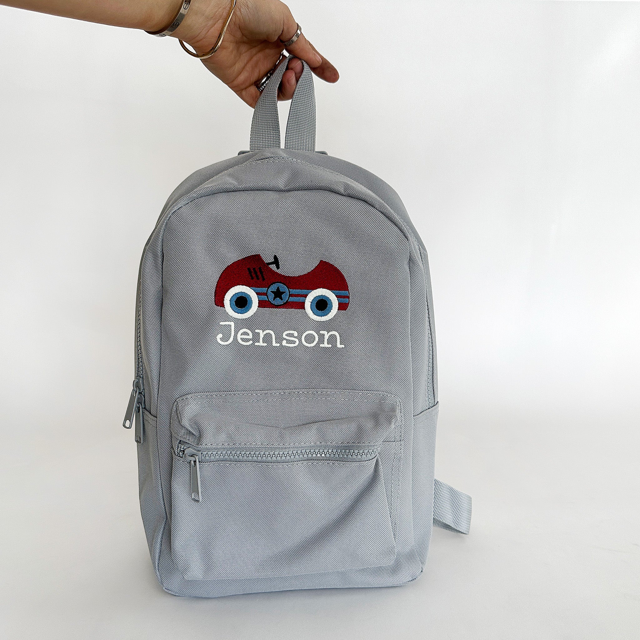 Introducing our Personalized Kids Vintage Racecar Backpack, a delightful blend of style, functionality, and personal touch! Available in five vibrant colors, this backpack is designed to be the perfect companion for your little ones as they embark on their daily adventures.